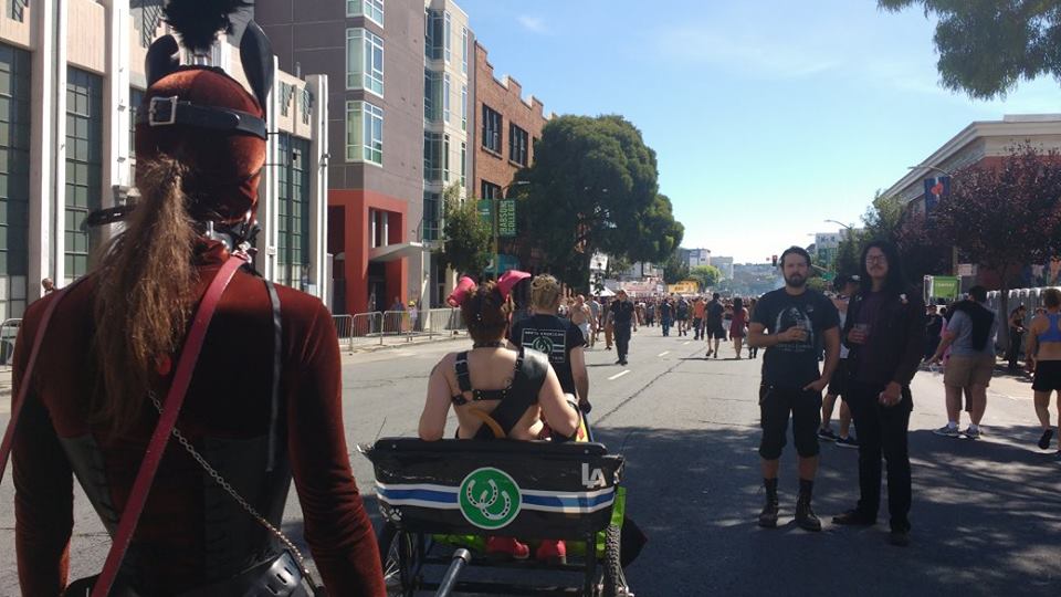 I was at Folsom Fair with two of my best friends, Tony Bark and Trainer Pollux. Tony Bark is a new Leather titleholder, Inland Empire Ambassador, so he was up on the Main stage being presented!
