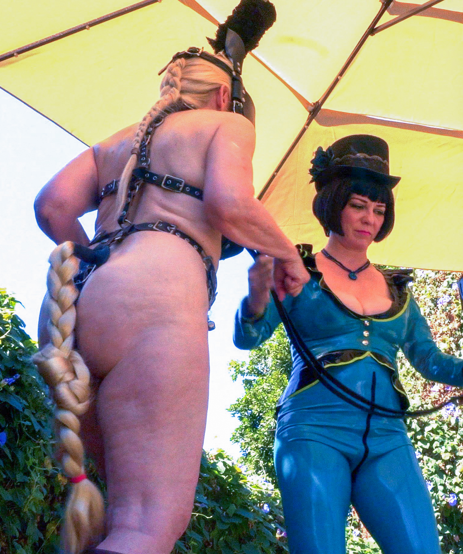 A: Bondage, the D/s dynamic, and Discipline are found in Pony Play. In the biological equine world there naturally exists opportunities for creative role play in BDSM.